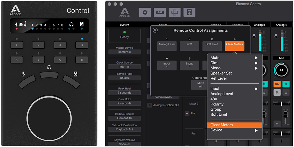 Sometimes, it just feels right to have hardware control at your fingertips – we know, we pioneered this approach with Apogee Duet. With the Apogee Control hardware remote, you have 8 buttons and a control knob that you can configure to control a wide range of settings. Apogee Control Hardware Remote connects directly to your Mac using a simple USB cable.