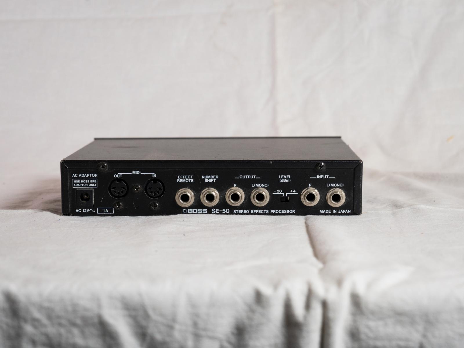Der Boss SE-50 ist ein kompakter Multi-Effektprozessor aus den späten 1980er/1990er Jahren, der in einem rack-/stomp-fähigen Gehäuse betrieben wird und MIDI unterstützt. Er kombiniert Modulation, Delay, Reverb, Chorus, Phaser, EQ und weitere Effekte in einem vielseitigen Einheit. Typisch verwendet für Studio- oder Live-Einsatz.