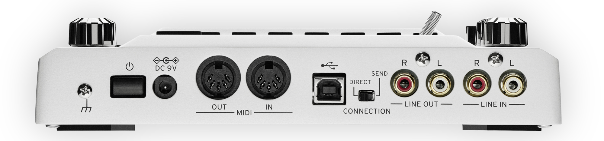 Kopfhöreranschluss (6,3 mm Klinke, stereo), MIDI IN / OUT, USB (Typ-B)